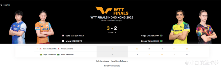 北京时间12月12日,WTT香港总决赛混双小组赛,松岛辉空/张本美和3-2险胜卡尔德拉诺/布鲁娜晋级四强,五局比分:【11-6,10-12,5-11,14-12,12-10】 。这场比赛日乒组合在1-2落后的情况下连赢两局逆转,可以说是绝杀晋级四强。